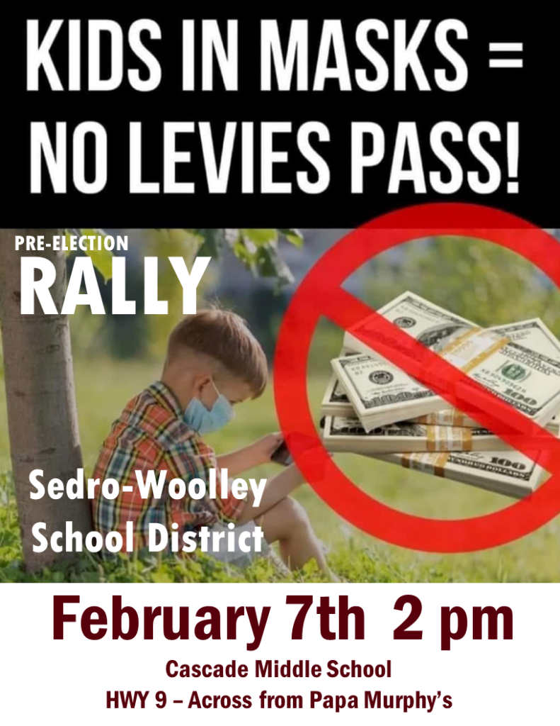 There has been a long-standing public outcry to restore parental rights and implement mask optional policies in schools. Yet the school board ignores us. Now they’re asking for public support for a local levy on February 8. SWSD is attempting to have its cake and eat it too – their policies have marooned hundreds of families but they aren’t giving up on collecting tax dollars of those they refuse to represent. Enough is enough. Feel free to use one of our signs or bring your own!