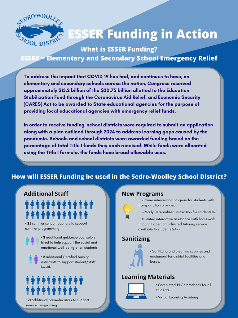 Expenditures from ESSER II, III and Cares Act (ESSER I) for Sedro-Woolley School District include: