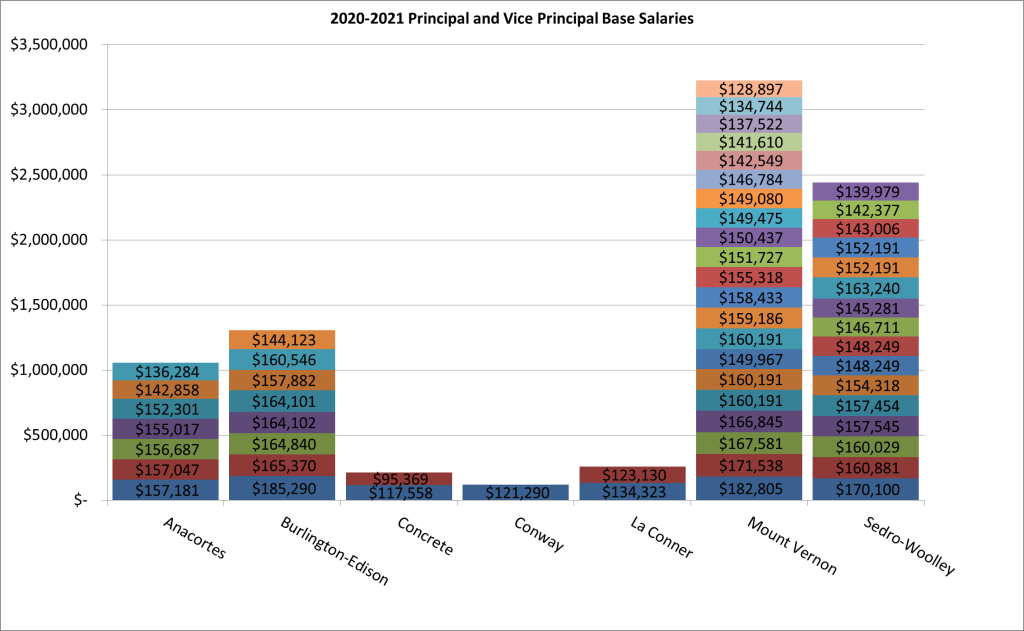 Figure 2. Skagit County Principal and Vice Principal base salaries from 2020-2021.[10]